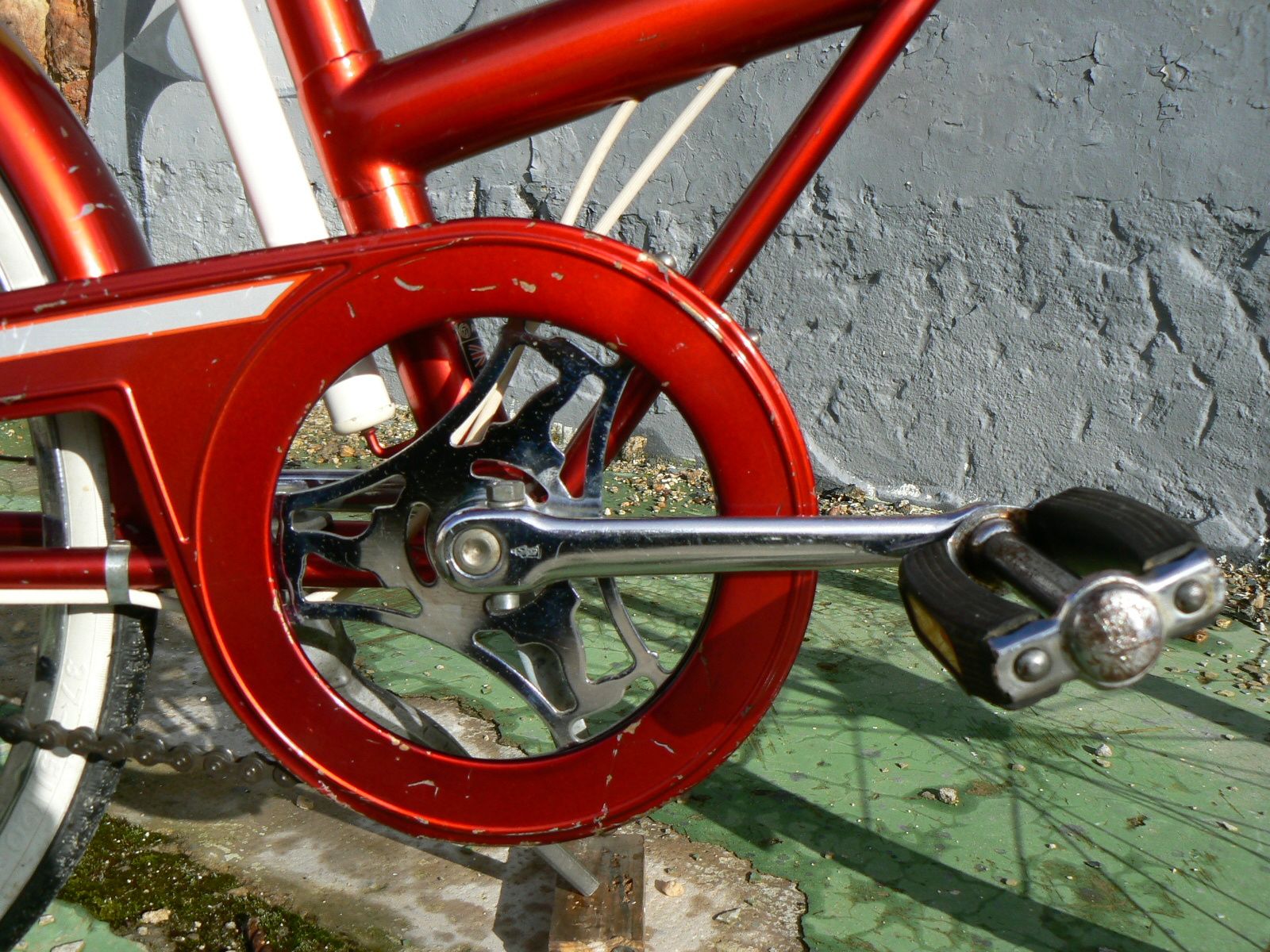 Outre son cadre non pliant à la couleur rouge flamboyant, la caractéristique du vélo est la présence de moyeux Sturmey-Archer (type SAB arrière et SBF avant) combinant 3 vitesses et frein à tambour.